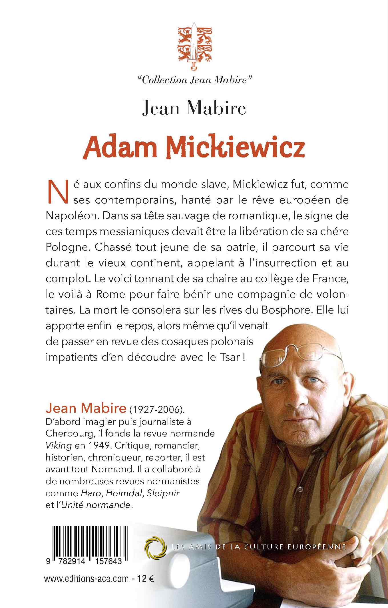 Né aux confins du monde slave, Mickiewicz fut, comme ses contemporains, hanté par le rêve européen de Napoléon. Dans sa tête sauvage de romantique, le signe de ces temps messianiques devait être la libération de sa chére Pologne. Chassé tout jeune de sa patrie, il parcourt sa vie durant le vieux continent, appelant à l’insurrection et au complot. Le voici tonnant de sa chaire au collège de France, le voilà à Rome pour faire bénir une compagnie de volontaires. La mort le consolera sur les rives du Bosphore. Elle lui apporte enfin le repos, alors même qu’il venait de passer en revue des cosaques polonais impatients d’en découdre avec le Tsar !